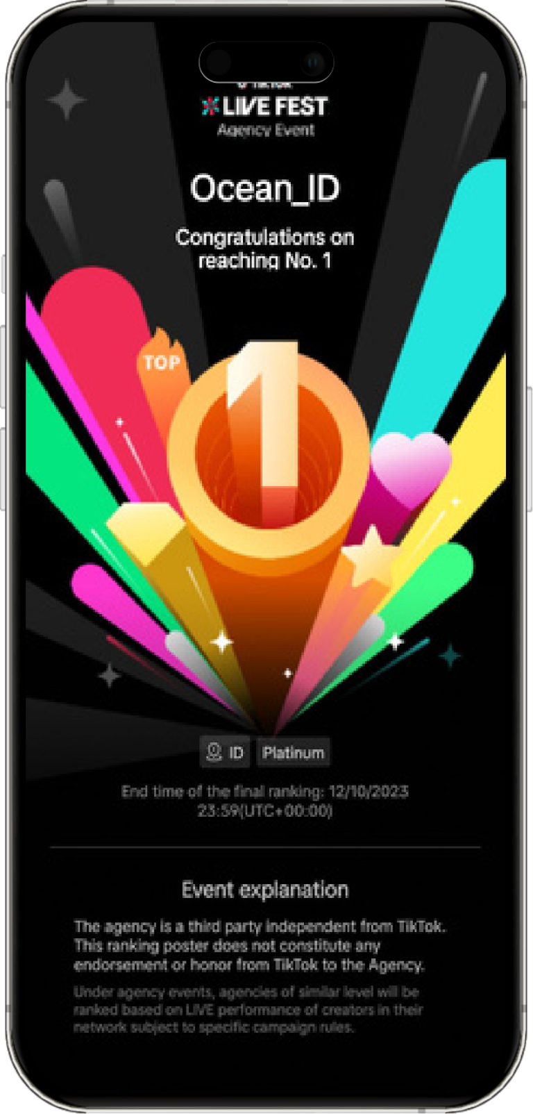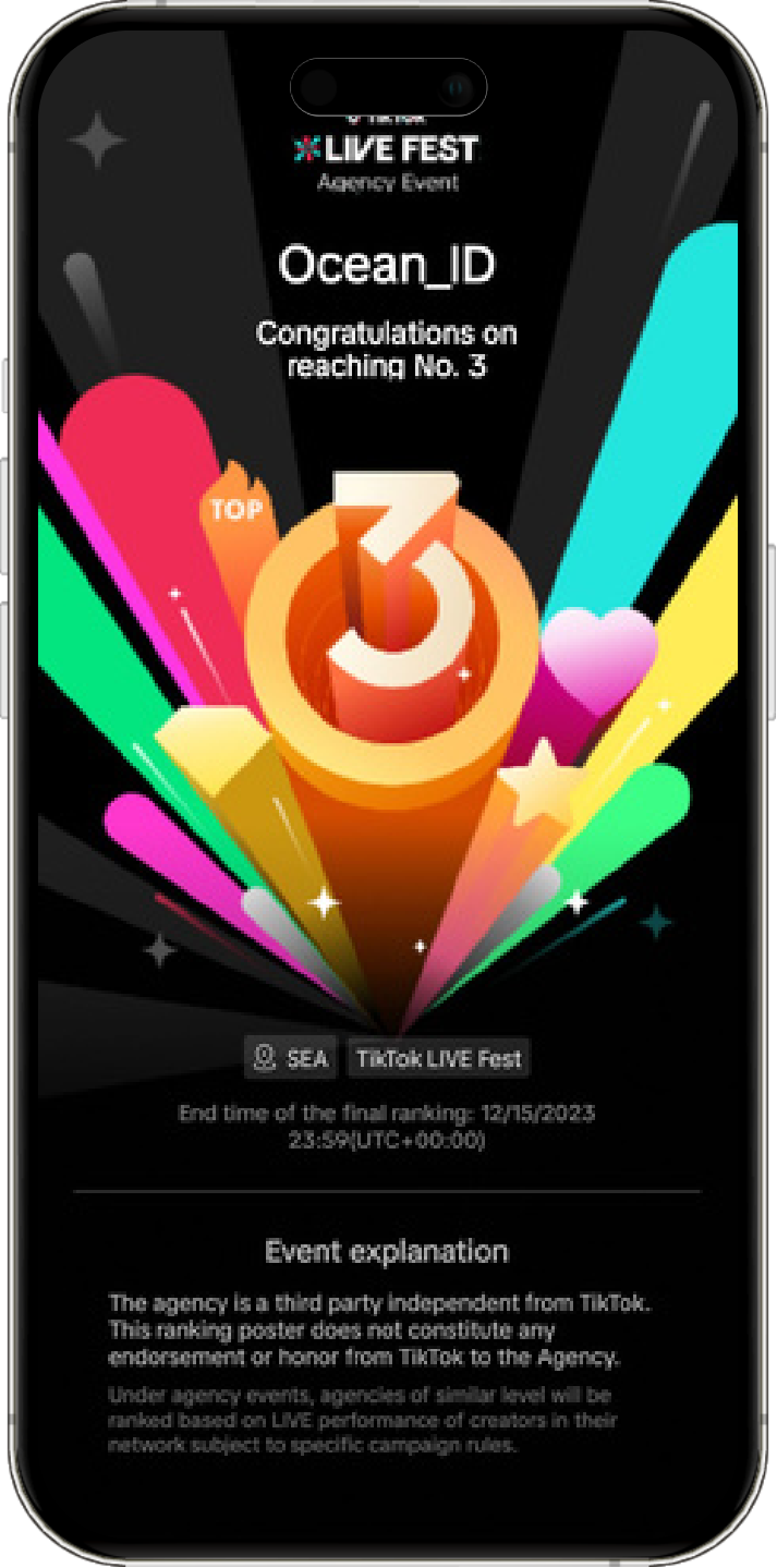 Pada Festival LIVE TikTok 2023 & Anugerah Asia Tenggara, Ocean Media berhasil memenangkan gelar Juara Indonesia dan meraih penghargaan tertinggi kelas organisasi peringkat ketiga di Asia Tenggara
